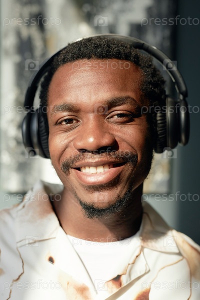 Клюзовый портрет чернокожего мужчины, носящего наушники на солнце