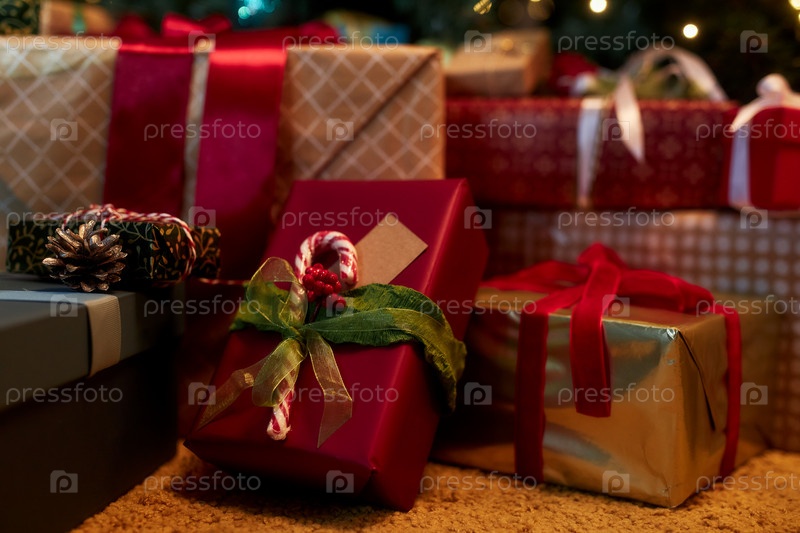 Close Up из красочных рождественских подарков