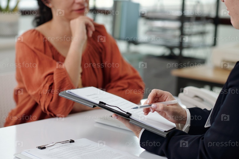 Социальный работник, объясняющий контракт клиенту