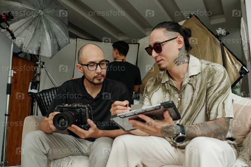 Режиссер обсуждает контент с оператором
