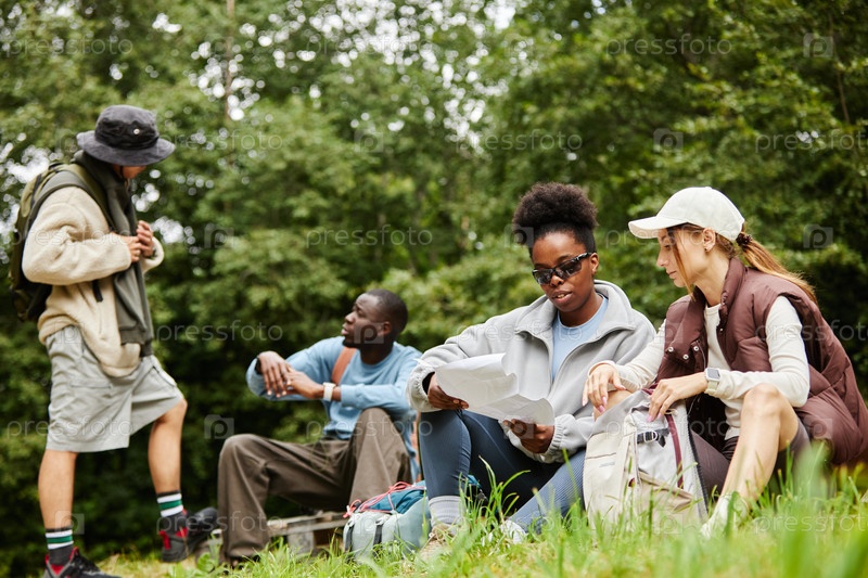 Туристы, сидящие на траве