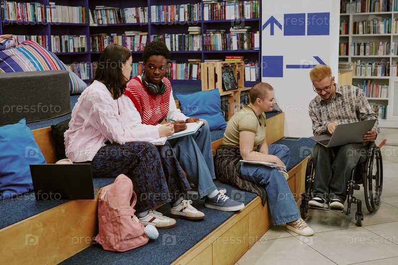 Группа друзей, сотрудничающих в университетской библиотеке