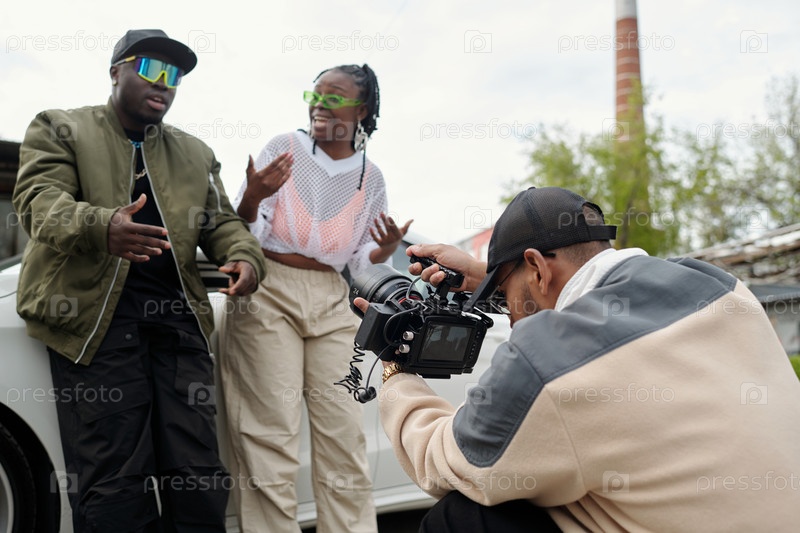 Съемка музыкального видео на открытом воздухе с энтузиастическим исполнением
