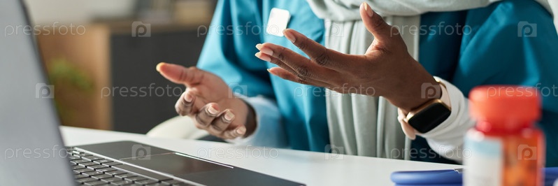 Жестикулирование во время офисной встречи с открытым ноутбуком