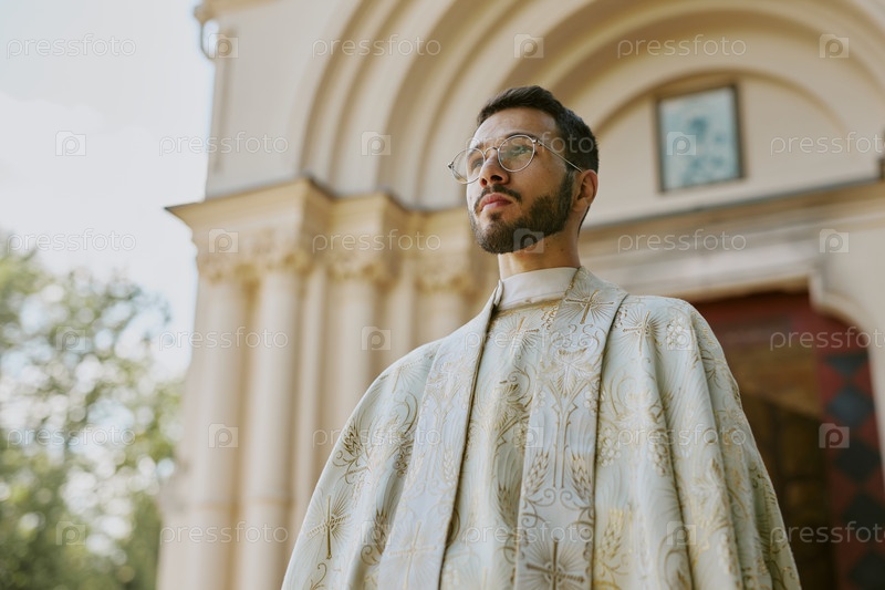 Концентрированный священник снаружи