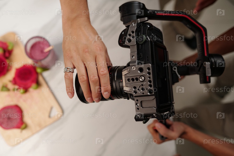 Оператор снимает пищевой контент на камеру