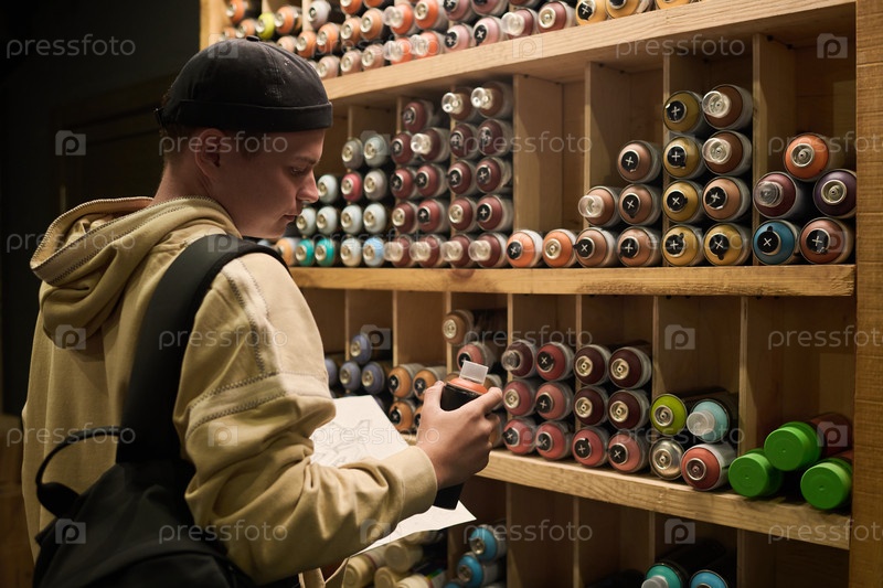 Художник-креативный граффити с черной банки