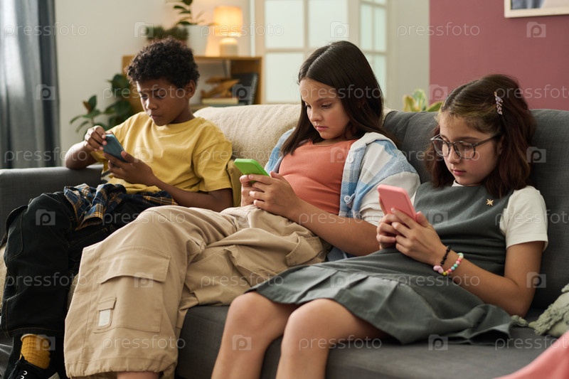 Дети взаимодействуют с устройствами в уютной обстановке гостиной