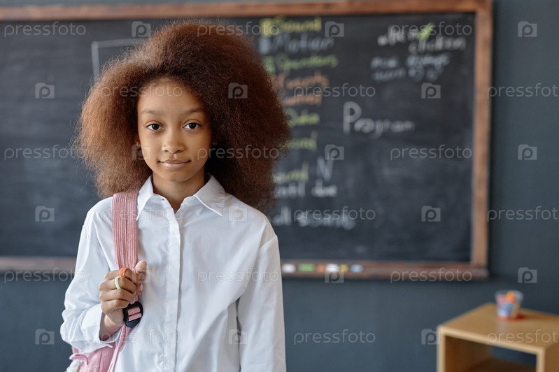 Черная девушка держит рюкзак и позирует на доске
