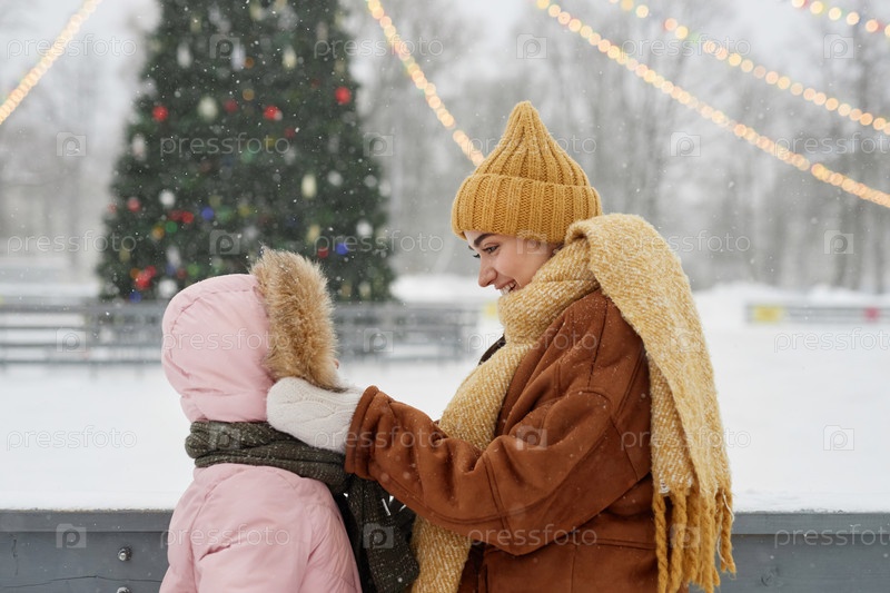 Мать и дочь в зимнем парке