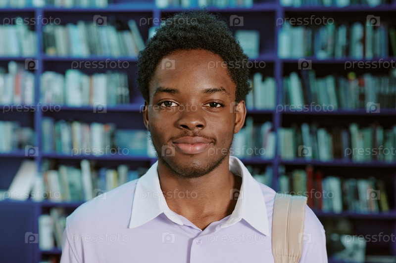 Портрет улыбающегося молодого человека в библиотеке