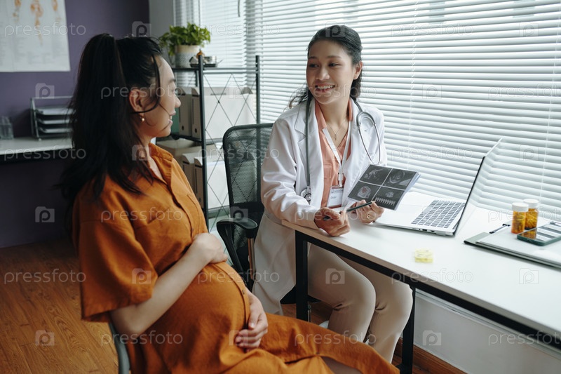 Беременная женщина консультируется с улыбающейся женщиной-врачом