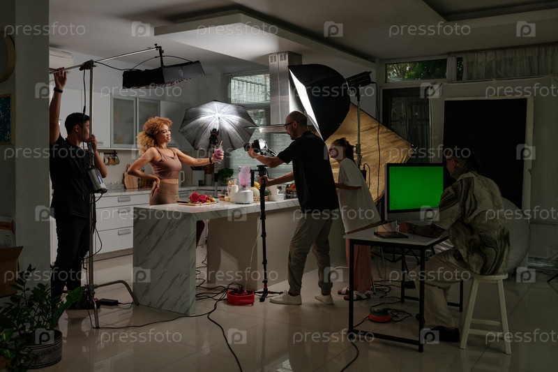 Команда операторов, снимающих контент в студии