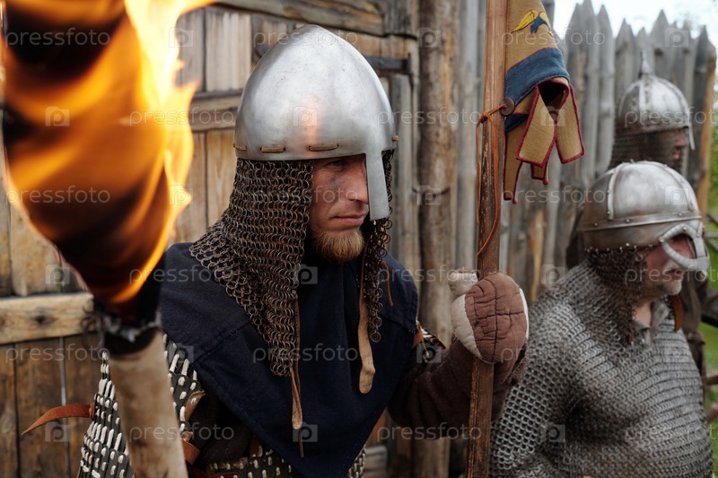 Реакторы, носящие средневековые доспехи, держащие факелы в Форте