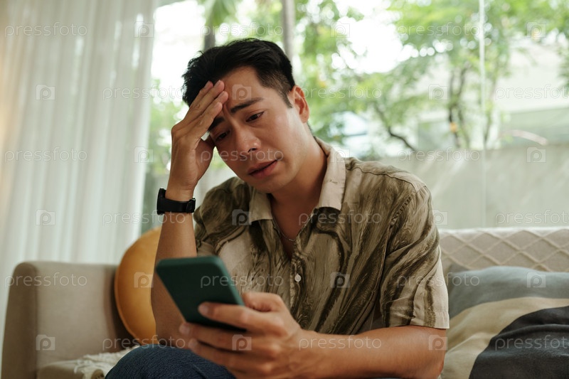 Человек, читающий плохое сообщение по телефону
