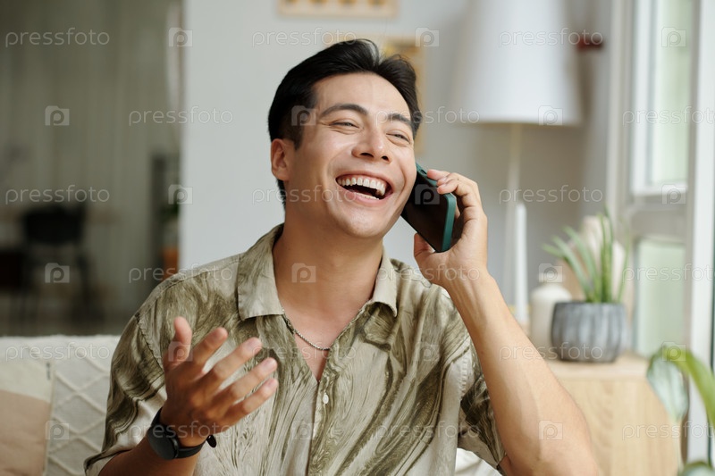 Счастливый мужчина, разговаривающий по мобильному телефону
