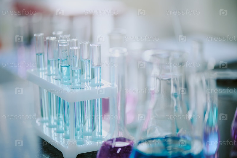 Ассортированные лабораторные тестовые трубки, удерживающие цветную жидкость