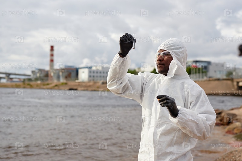Ученый-исследователь в Hazmat Gear with Test Tube