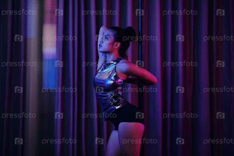 Женщина в металлическом наряде пересматривает танцевальную рутину