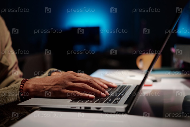 Написывание на ноутбуке в Office Setting с тусклым освещением