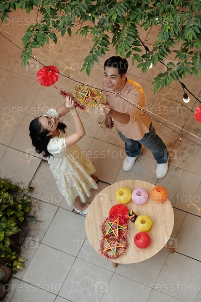 Пара, украшающая двор к празднику