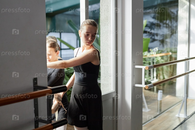 Танцовщица балета приходит в студию с детьми перед классом