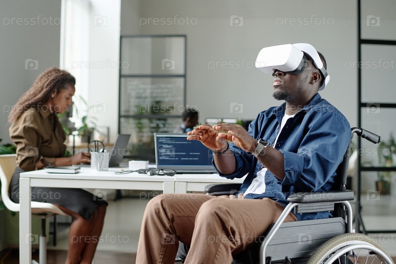 Работник с инвалидностью отдыхает в офисе