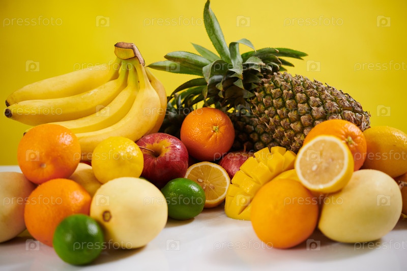 Живое отображение свежих тропических фруктов на столе