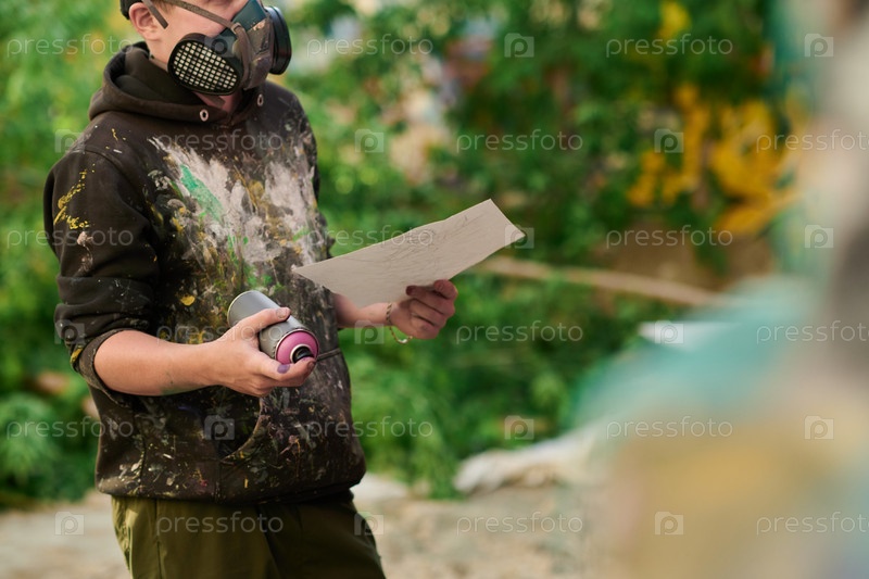 Художник-граффити в защитном респираторе
