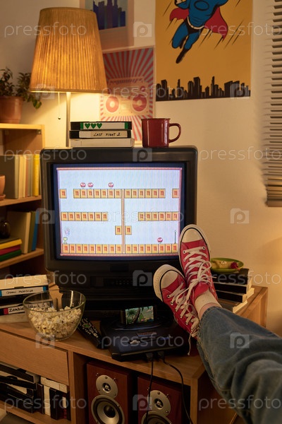 Наслаждаясь ретро игрой на старом экране телевизора