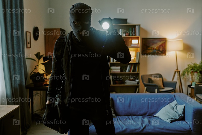 Непризнанный мужчина в Балаклаве смотрит на камеру