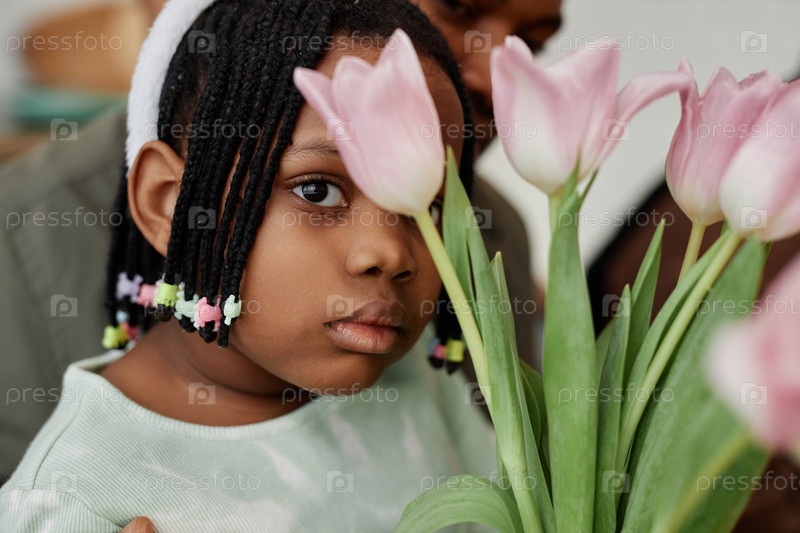 Портрет молодой девушки, держащей розовые цветы с сосредоточенным выражением лица