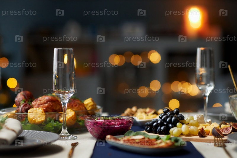 Праздничная столовая укладка с пустыми бокалами для рождественского обеда