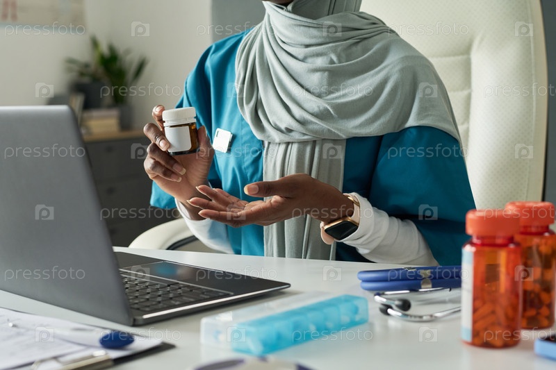 Медицинский специалист, объясняющий процесс приема лекарств