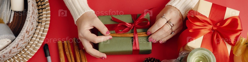 Подготовка праздничных подарков с помощью декоративной ленты