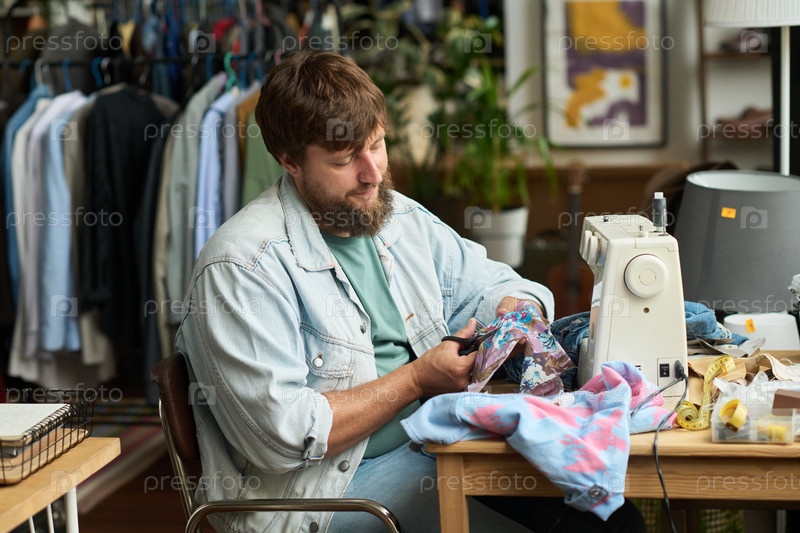 Молодой человек вырезает кусок текстиля