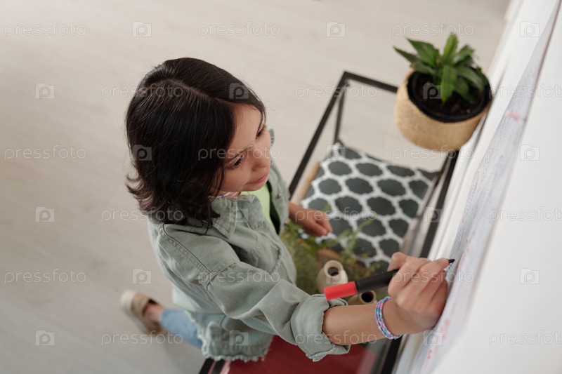Молодая девушка участвует в творческом стеновом искусстве