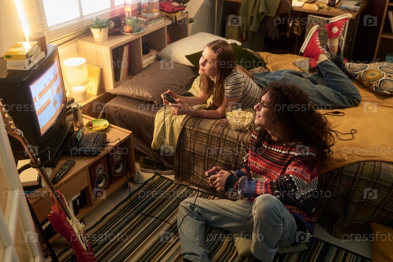 Наслаждаясь классической видеоигрой вместе в уютный вечер