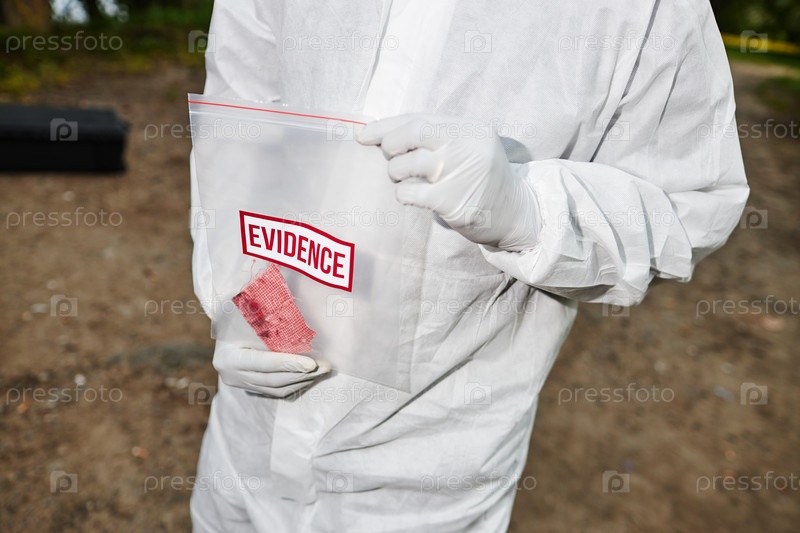 Человек, удерживающий доказательства в Hazmat Gear