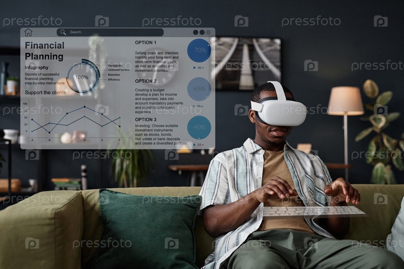 Молодой человек использует виртуальную клавиатуру