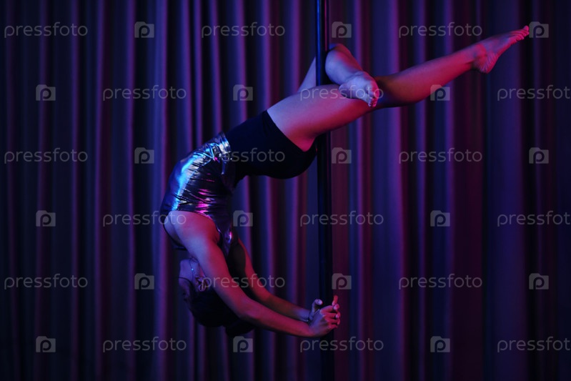 Выполнение танца на столбе в тускло освещенной комнате