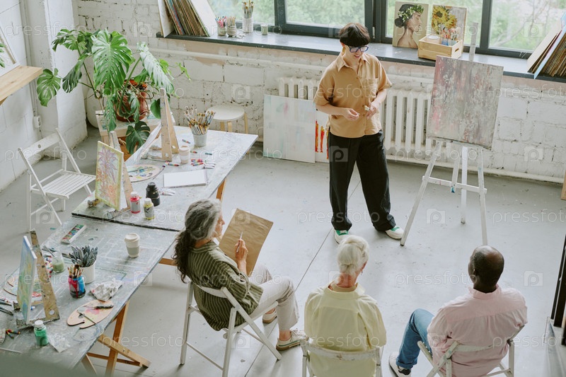 Студия рисования с талантливым учителем и учащимися внутри