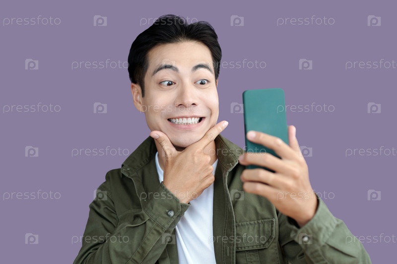 Мужчина позирует перед камерой на своем телефоне