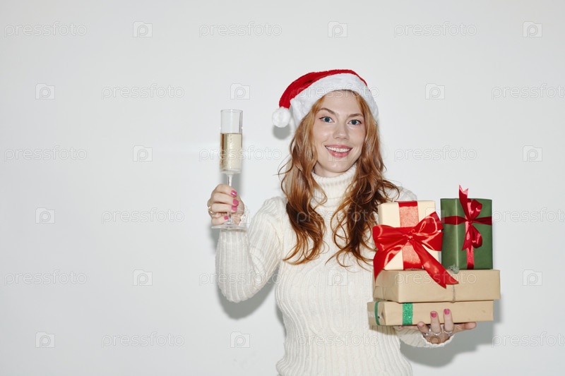 Празднование Рождества с подарками и шампанским