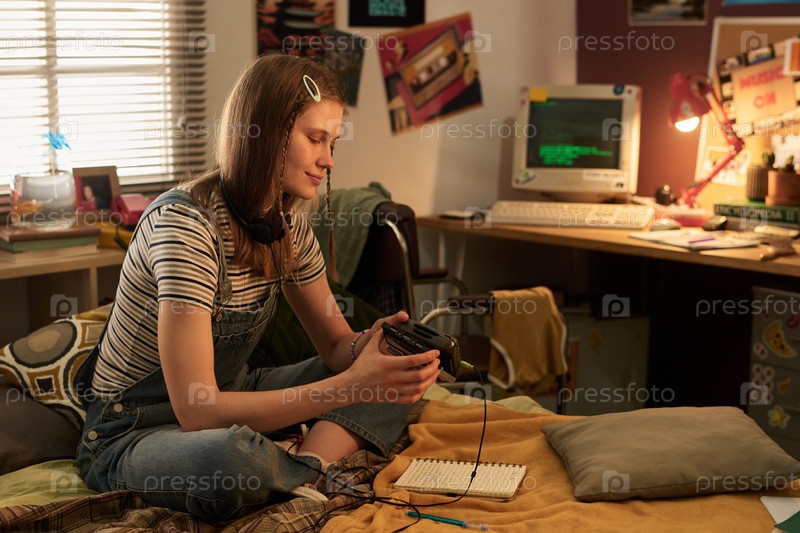 Наслаждаться досугом в уютной спальне с винтажным компьютером