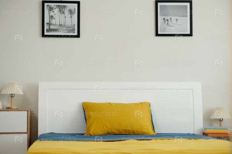 Уютная спальня с современным декором и ярким постельным белье