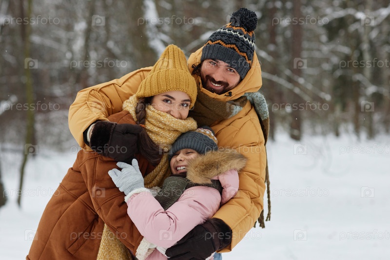Счастливая семья играет в Зимнем парке