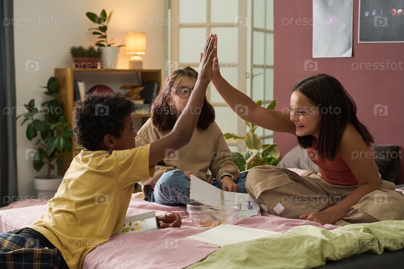 Дети веселятся, делая домашнее задание вместе