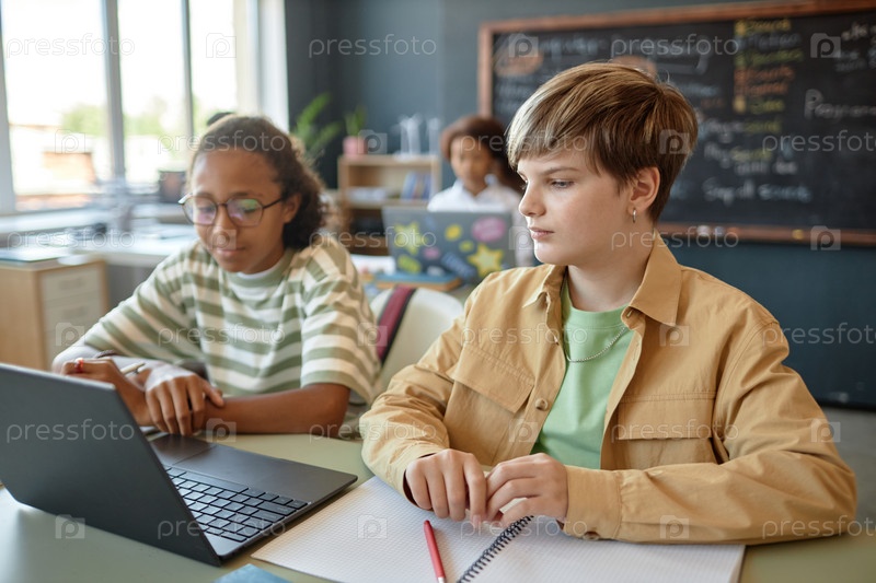 Мальчик-подросток Девушка использует ноутбук для учебы в классе Смотреть видео онлайн