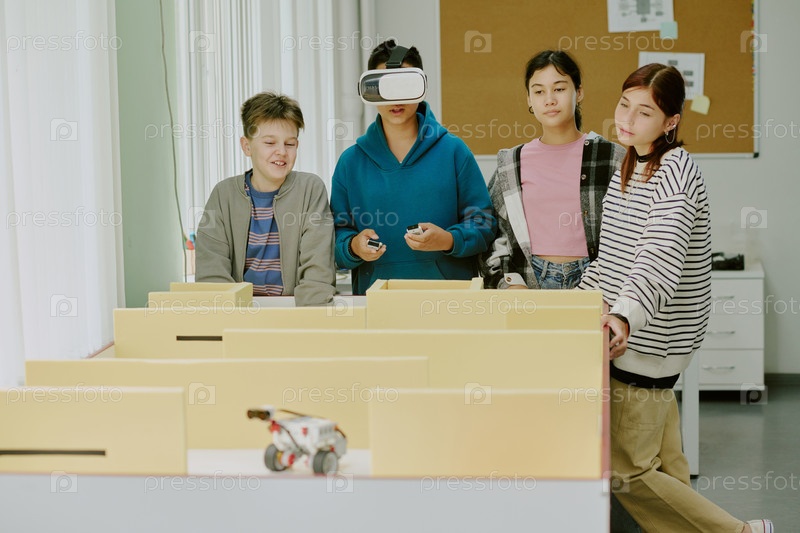 Одноклассники смотрят, как мальчик играет в видеоигру
